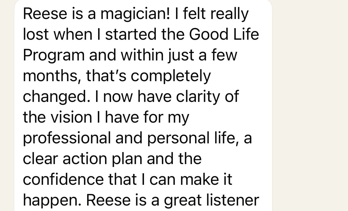 Have a question, need guidance, or just want to share a win? I’m here for you between calls to keep the momentum going. You also get access to ‘Good Life Wins’, a group with other Ladies to share experiences.
